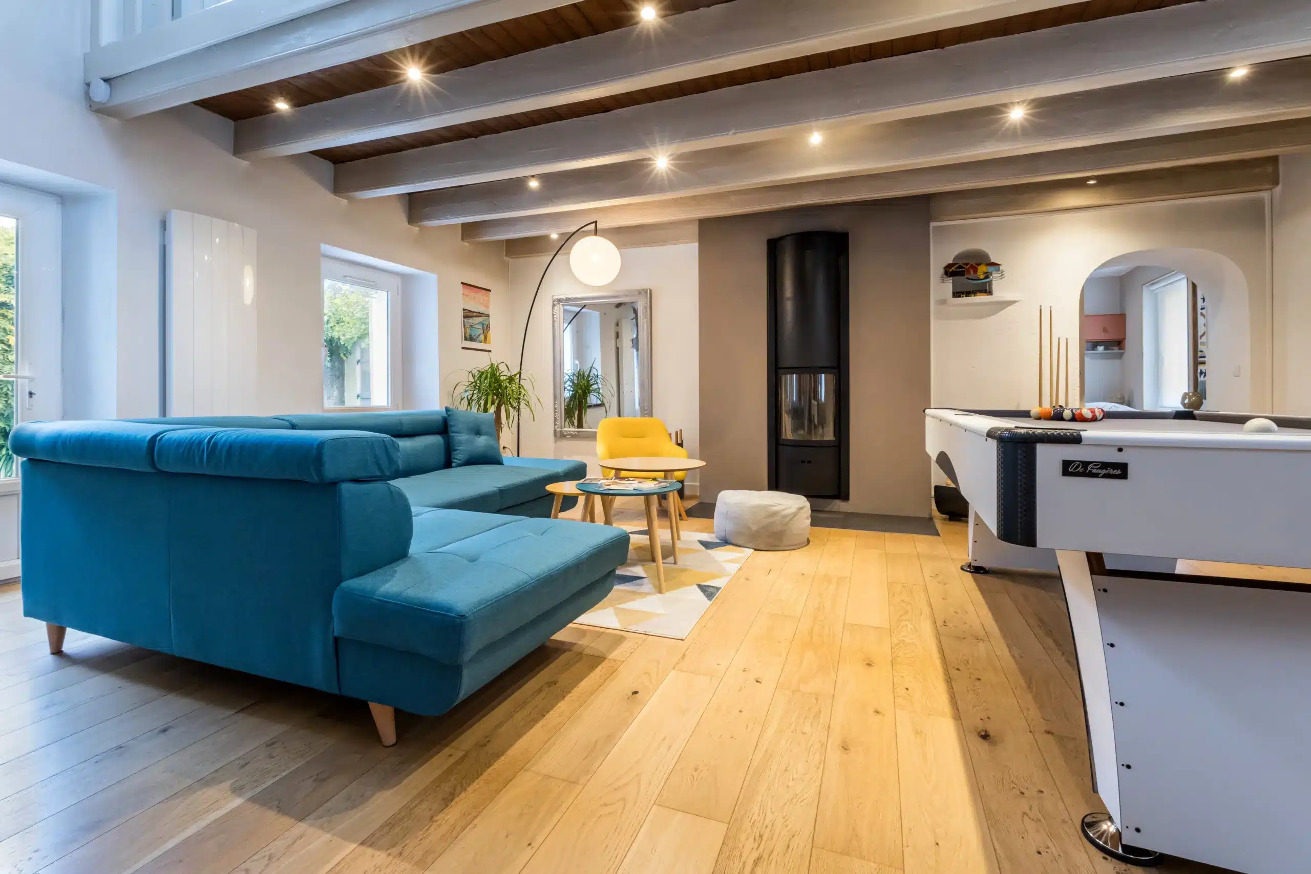 Une pièce à vivre dans laquelle on se sent bien pour passer du bon temps en famille ou entre amis, c’est essentiel. Pensez donc à soigner sa décoration et à y inclure des jeux et équipements pour vos hôtes.
